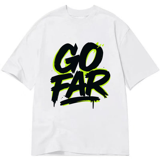 Bold typography design - GO FAR - distance goals, pushing limits - Vintage T-shirt