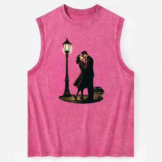 first kiss under vintage street lamp on cobblestone at night - Vintage Washed Tank