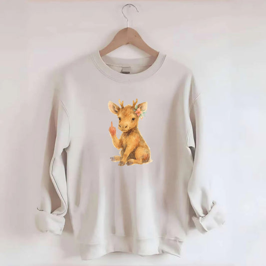 baby moose with adorable tiny antlers, one hoof raised in attitude - Crewneck Sweatshirt