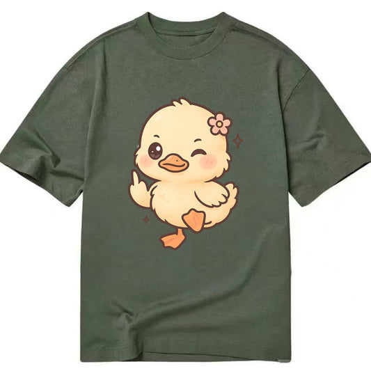 fluffy baby duck with small flower, one webbed foot raised sassily - Classic T-shirt