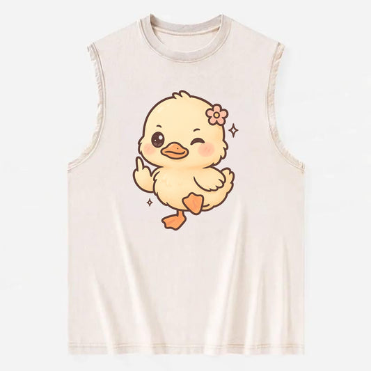 fluffy baby duck with small flower, one webbed foot raised sassily - Vintage Washed Tank