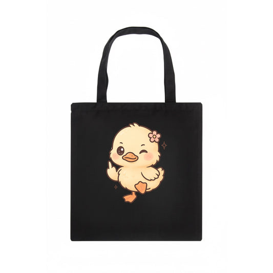 fluffy baby duck with small flower, one webbed foot raised sassily - Tote Bag