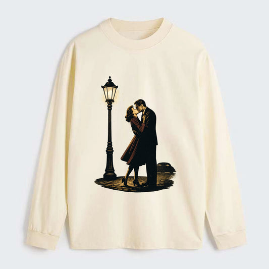 first kiss under vintage street lamp on cobblestone at night - Classic Long Sleeve Shirt