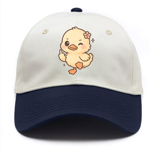 fluffy baby duck with small flower, one webbed foot raised sassily - Two Tone Cap