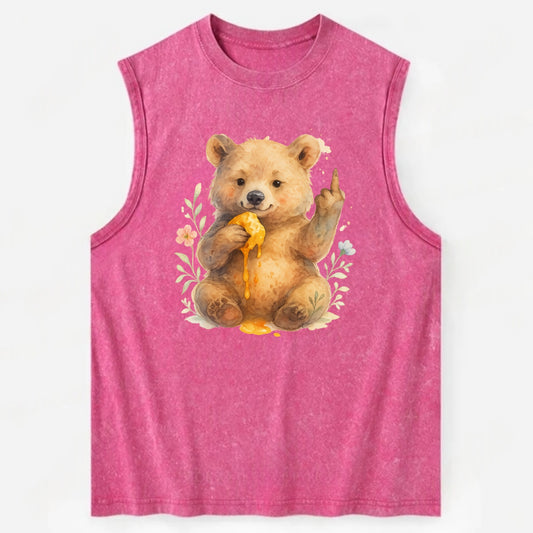 chubby bear cub eating dripping honey, sticky paw up with middle finger - Vintage Washed Tank