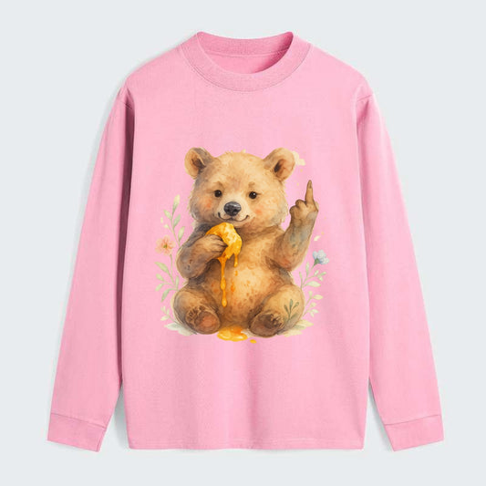 chubby bear cub eating dripping honey, sticky paw up with middle finger - Classic Long Sleeve Shirt