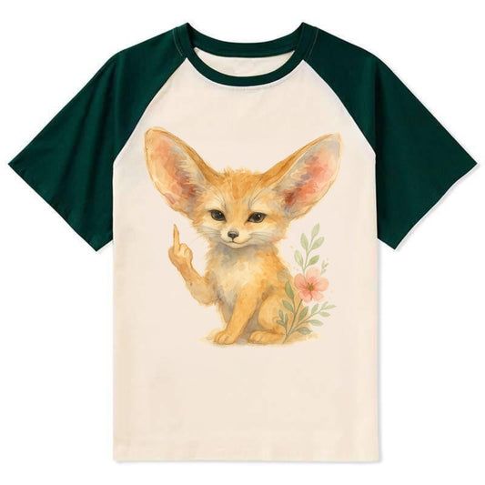 tiny fennec fox with oversized ears, one small paw raised in sass - Contrast Raglan T-shirt