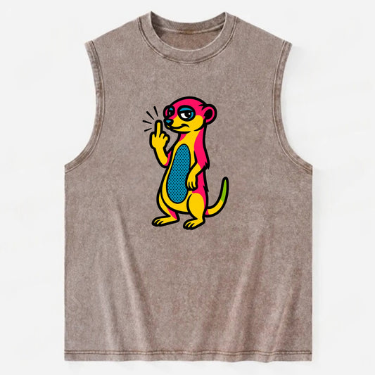 cute meerkat standing guard on hind legs, one front paw raised in sassy salute - Vintage Washed Tank