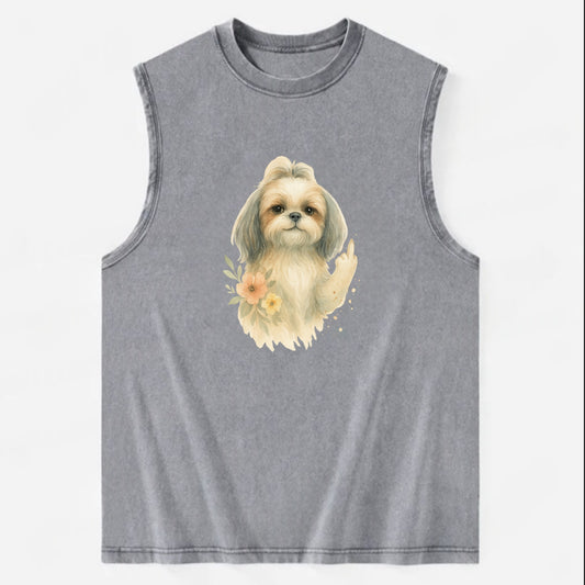 Shih Tzu with long flowing silky hair, tiny paw showing attitude - Vintage Washed Tank