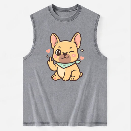 French Bulldog sitting with bat ears up, strong paw with sass - Vintage Washed Tank