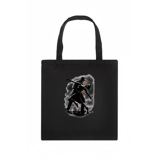 romantic dance pose with woman lifted in the air at lakeside - Tote Bag