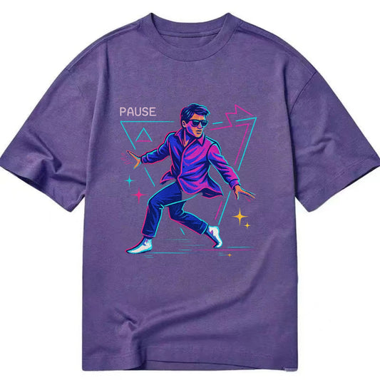 confident figure sliding across polished wooden floor in socks and sunglasses - Vintage T-shirt