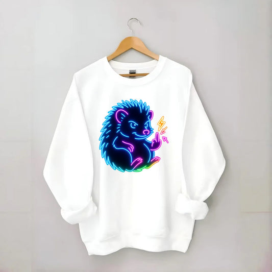 tiny hedgehog curled up slightly, one little paw raised flipping the bird - Crewneck Sweatshirt