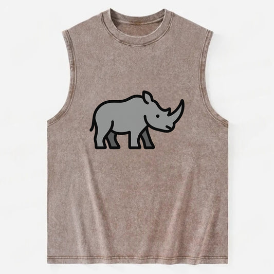 Rhinoceros - Gray with horn flat side profile - Vintage Washed Tank