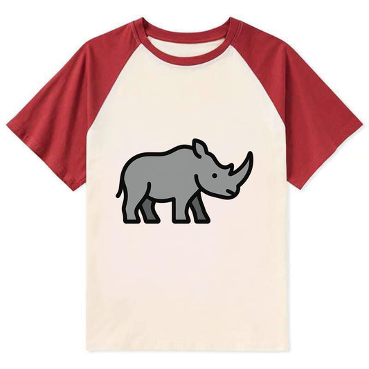 Rhinoceros - Gray with horn flat side profile - Contrast Raglan T-shirt