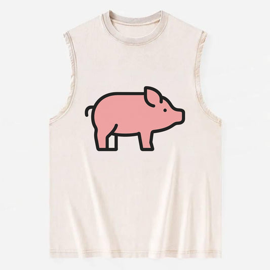 Pig - Pink farm pig flat side profile - Vintage Washed Tank