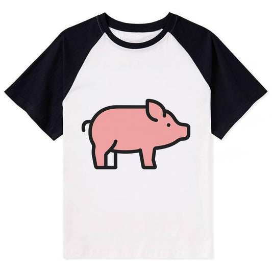 Pig - Pink farm pig flat side profile - Contrast Raglan T-shirt
