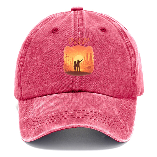 Sunrise over thriving sustainable city - The Future is Bright - optimistic vision - Baseball Cap