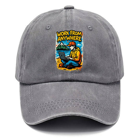 Digital nomad with laptop on beach/mountain - work from anywhere lifestyle, location - Baseball Cap