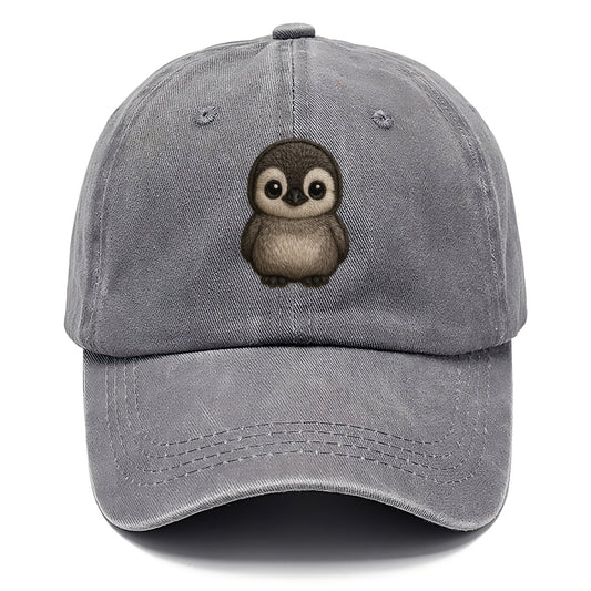 Baby Penguin Chick - gray fluffy, white face, round body, front-facing, tuxedo baby - Baseball Cap
