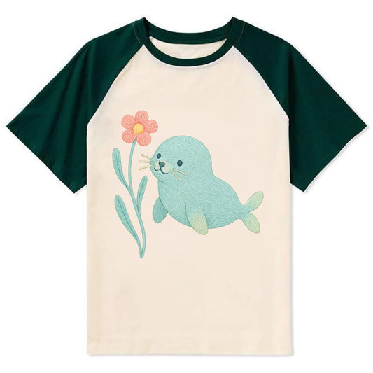 Mint Seal Pup - Raglan Long Sleeve T-Shirt
