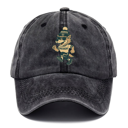Nevada Wolf wearing Raiders beanie with outlaw patch and wayfarer sunglasses - Baseball Cap