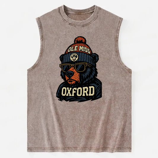 Oxford Black Bear wearing Ole Miss beanie with rebel patch - Vintage Washed Tank