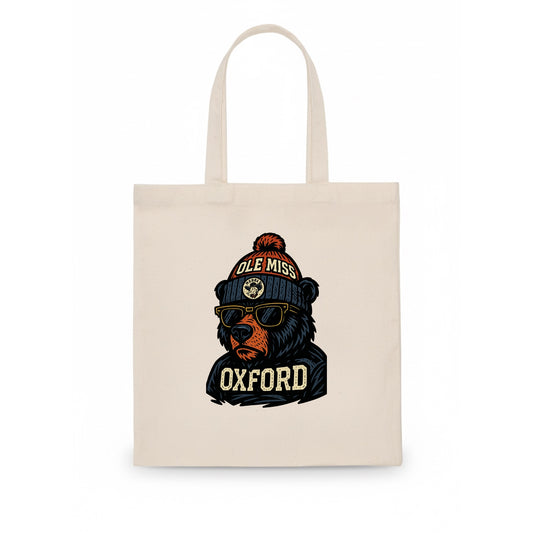 Oxford Black Bear wearing Ole Miss beanie with rebel patch - Tote Bag