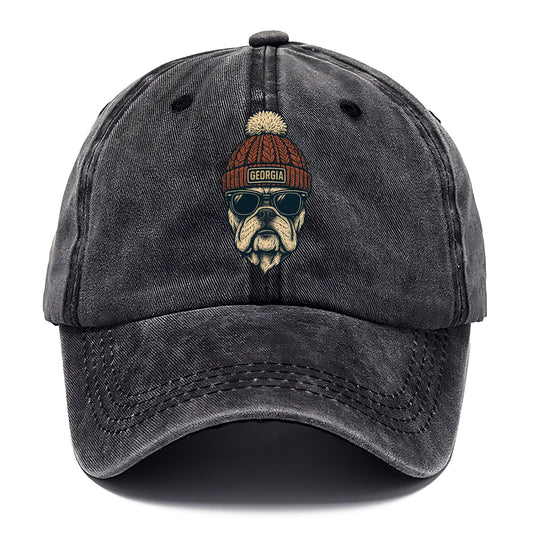 Athens Bulldog wearing Georgia beanie wi - Classic Cap