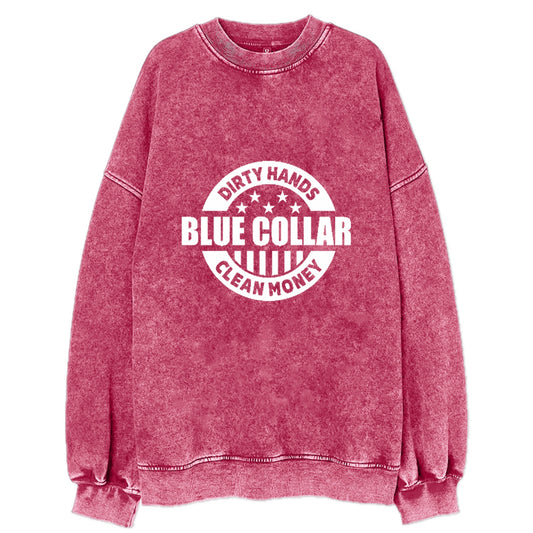 Sudadera vintage con cuello azul y manos sucias y dinero limpio
