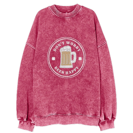 Sudadera vintage con texto en inglés "Don't Worry Beer Happy"