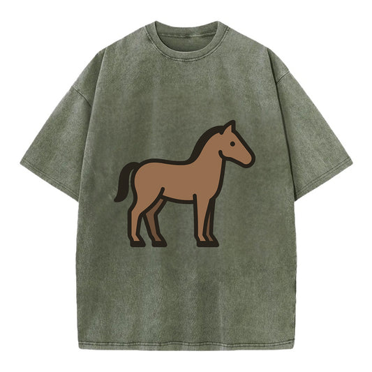 Horse - Brown standing pose flat side profile - Vintage T-shirt