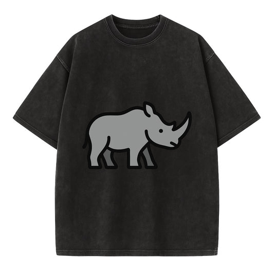 Rhinoceros - Gray with horn flat side profile - Vintage T-shirt