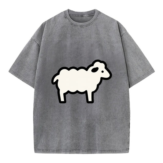 Sheep - White fluffy wool flat side profile - Vintage T-shirt