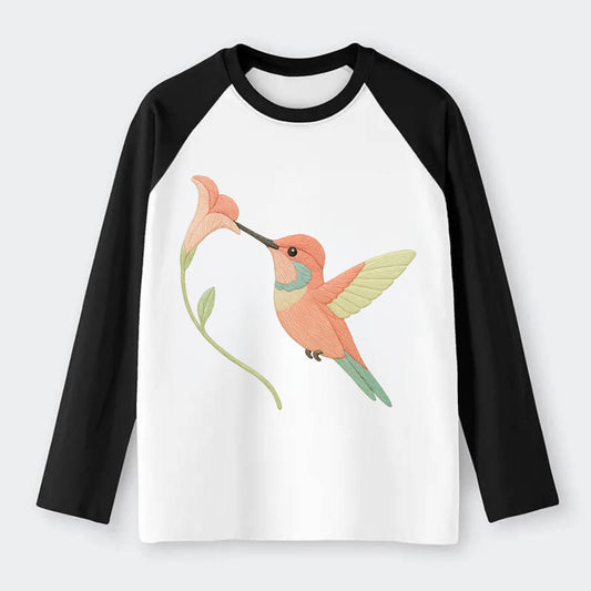 Coral Hummingbird - Raglan Long Sleeve T-Shirt