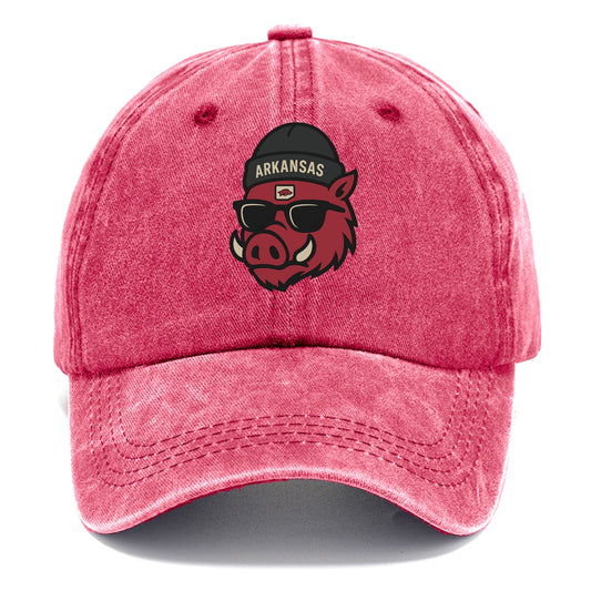 Fayetteville Razorback wearing Arkansas beanie with hog patch - Classic Cap
