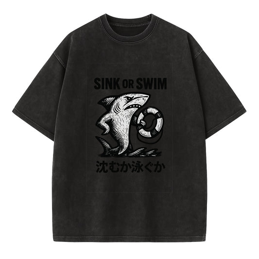 沈むか泳ぐか - 命の象徴を持つサメのヴィンテージTシャツ