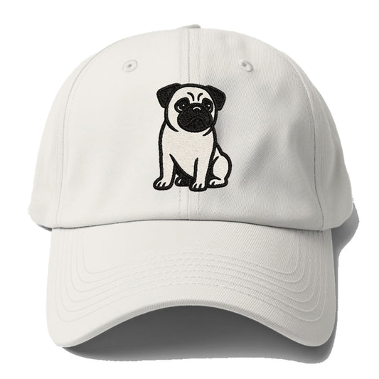 大きな頭にぴったりの、黒パグのチャーミングなコンパニオンベースボールキャップ