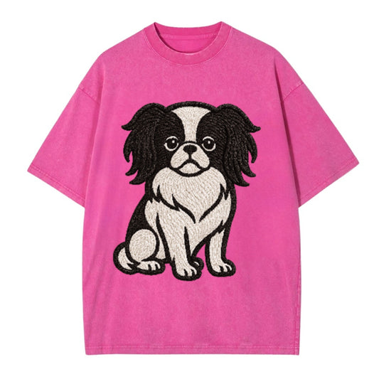 狆 黒白 威厳のあるチャーム ヴィンテージ Tシャツ