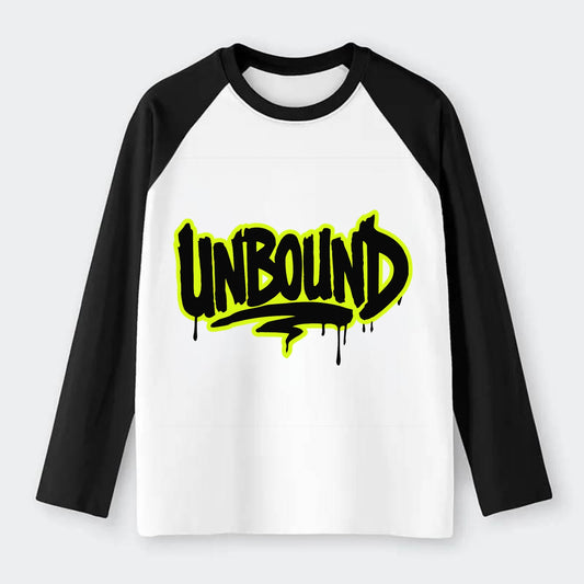 Bold typography design - UNBOUND - without limits, free from - Raglan Long Sleeve T-Shirt