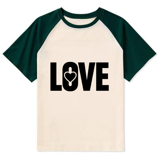 Bold typography design - LOVE - universal connection, heart centered - Contrast Raglan T-shirt