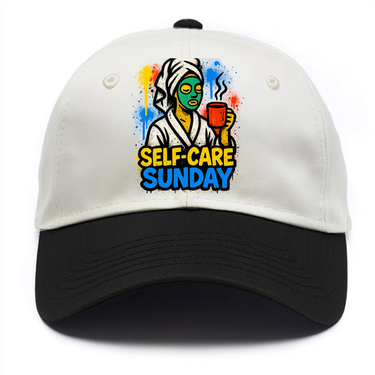 Person in bathrobe with face mask and tea - self-care Sunday ritual, wellness - Two Tone Cap