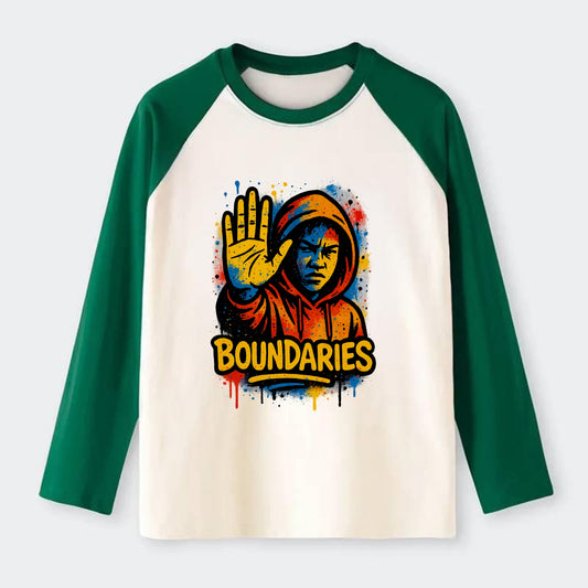 Person holding up hand in stop gesture - setting boundaries concept, - Raglan Long Sleeve T-Shirt
