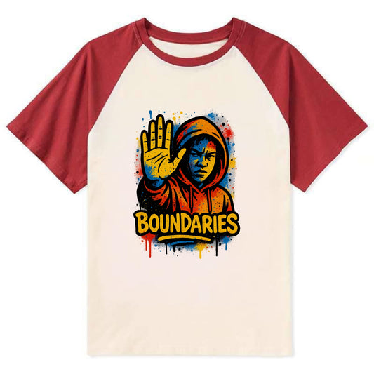 Person holding up hand in stop gesture - setting boundaries concept, - Contrast Raglan T-shirt