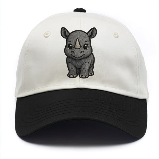 Baby Rhino - gray armor skin, tiny horn nub, round eyes, front-facing, tank baby - Two Tone Cap