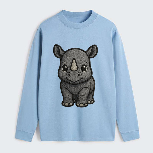 Baby Rhino - gray armor skin, tiny horn nub, round eyes, front-facing, - Classic Long Sleeve Shirt