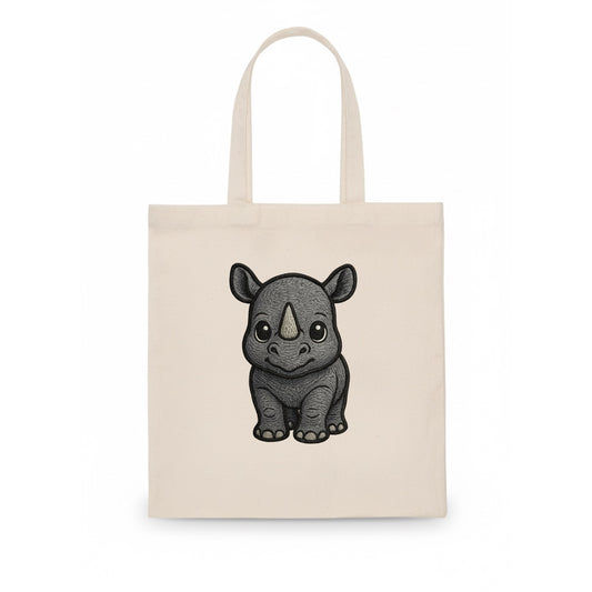 Baby Rhino - gray armor skin, tiny horn nub, round eyes, front-facing, tank baby - Tote Bag