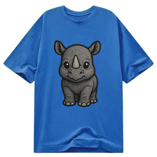 Baby Rhino - gray armor skin, tiny horn nub, round eyes, front-facing, tank baby - Classic T-shirt