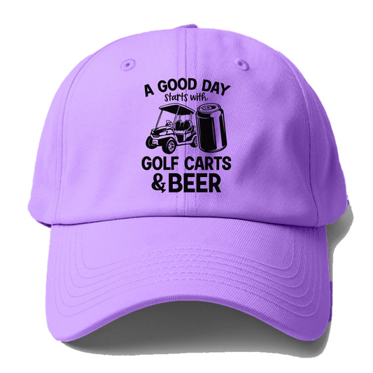 良い一日は、大きな頭のためのゴルフカートとビールベースボールキャップから始まります