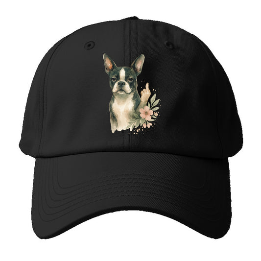 Boston Terrier with tuxedo markings, perky ears, paw up giving sass - Baseball Cap For Big Heads